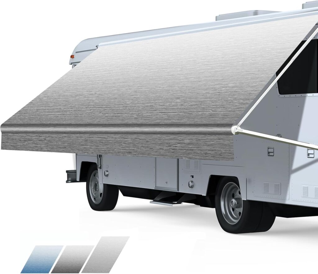 Do your awning arms and roller mechanism still work, but the fabric is wearing out or has tears/holes? Re-use your existing hardware and purchase a replacement awning fabric!