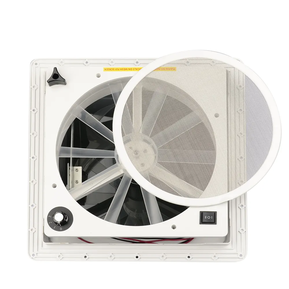 - 3-SPEED FAN REVERSIBLE : The fan can be operated in Reverse/Forward mode. This RV roof vent fan available in Low, Medium, Max on forward/reverse direction and Medium, Max on reverse/forward direction.