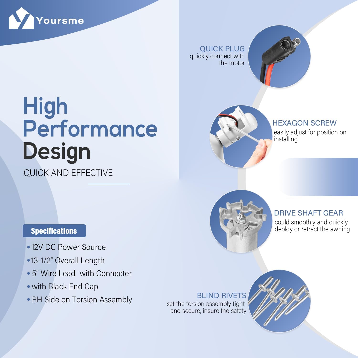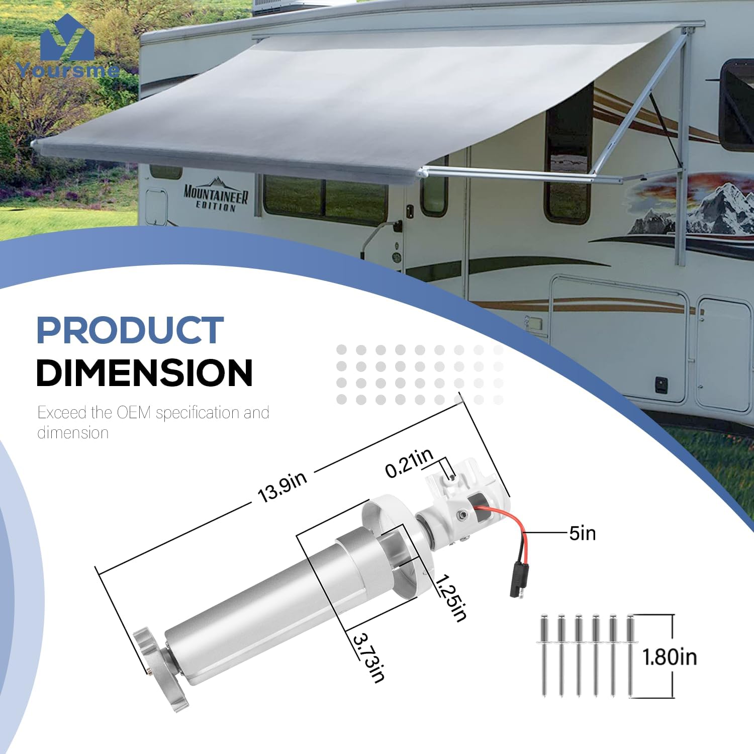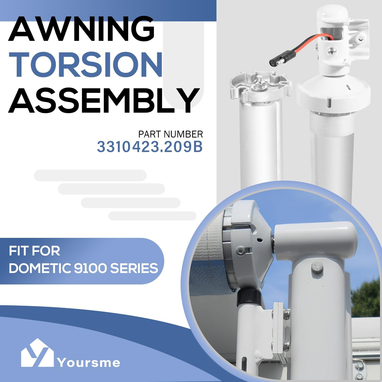 - Use with 9100 series awnings, replace your worn right hand torsion assembly, it connects the roller tube to the extension hardware. A motorized awning makes it a cinch to deploy or retract your RV awning, which makes it a lot easier relaxing at the trip.