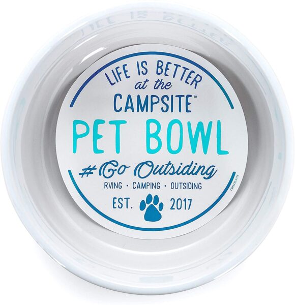 Camco’s Life is Better at the Campsite Pet Bowl is the perfect accessory for your pet. It’s stylish RV camping-themed design will look great in your home, RV or while you are out camping. The durable, ceramic bowl holds up to 3 cups of food or water. Measures 6" Diameter X 3" High.