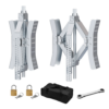 Durable and Rust-Resistant: Crafted from heavy-duty steel and coated with rust-resistant zinc, this X-shaped wheel chock is designed to withstand the elements. It maintains its shape even on slight slopes and features an anti-skid design for enhanced performance.