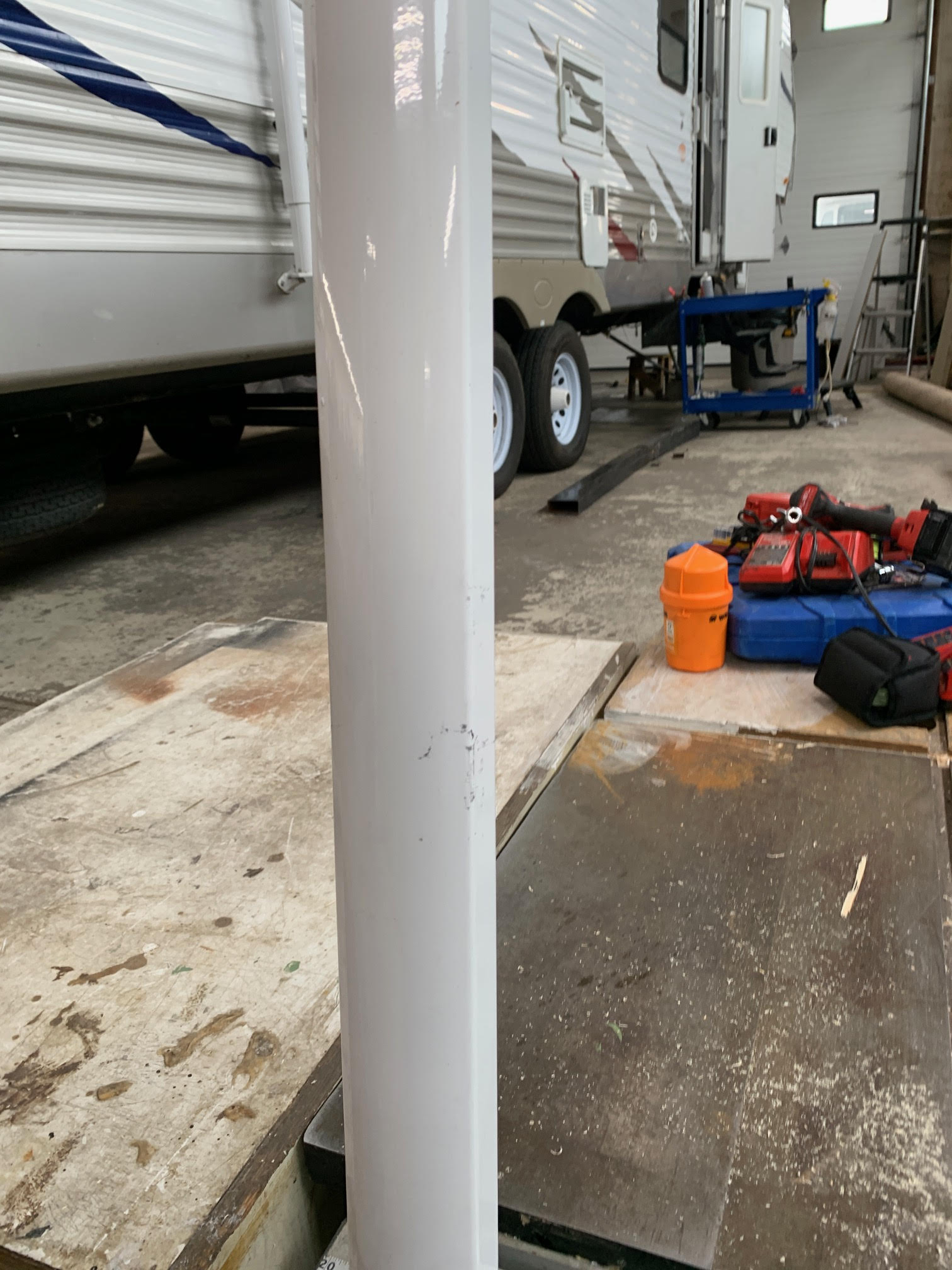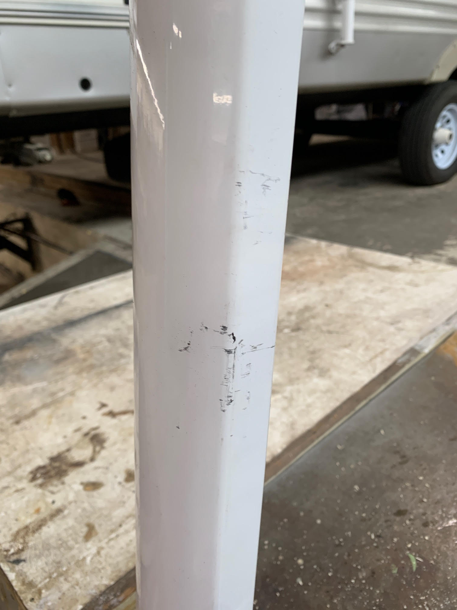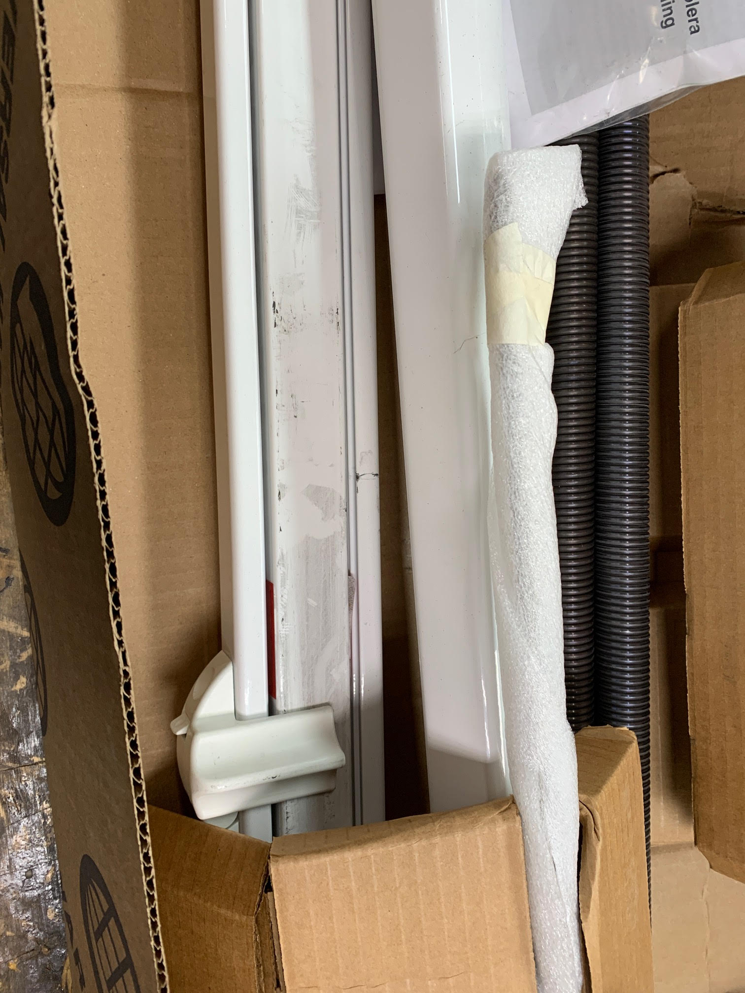 This is a brand new scratch n dent awning roller tube/fabric/hardware. The roller tube and fabric are in excellent condition. The hardware has slight scuffing/scratching as indicated in photos.