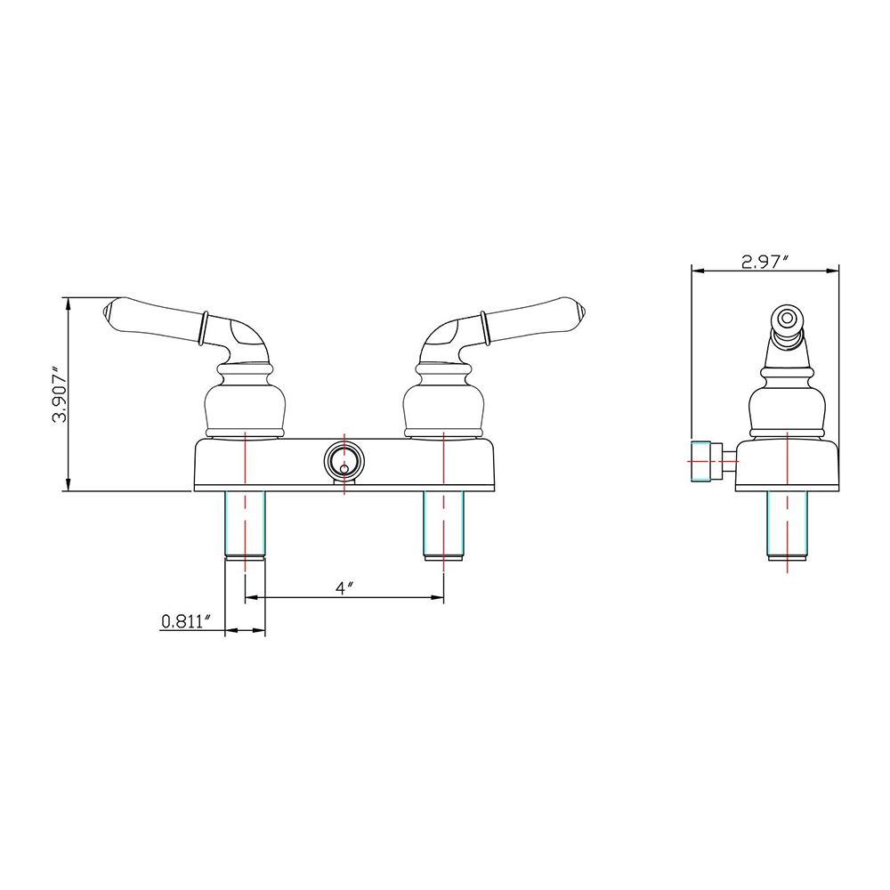 - Specifications | Works on any 2-hole, 4” center to center installation. Total length from wall is 3.9”. Flow rate is a powerful 2.4 GPM for those that are looking for powerful stream. This faucet is UPC and CUPC Certified. We are a proud American company with USA-based Customer Support so you can trust that any issues will be resolved timely and accurately.