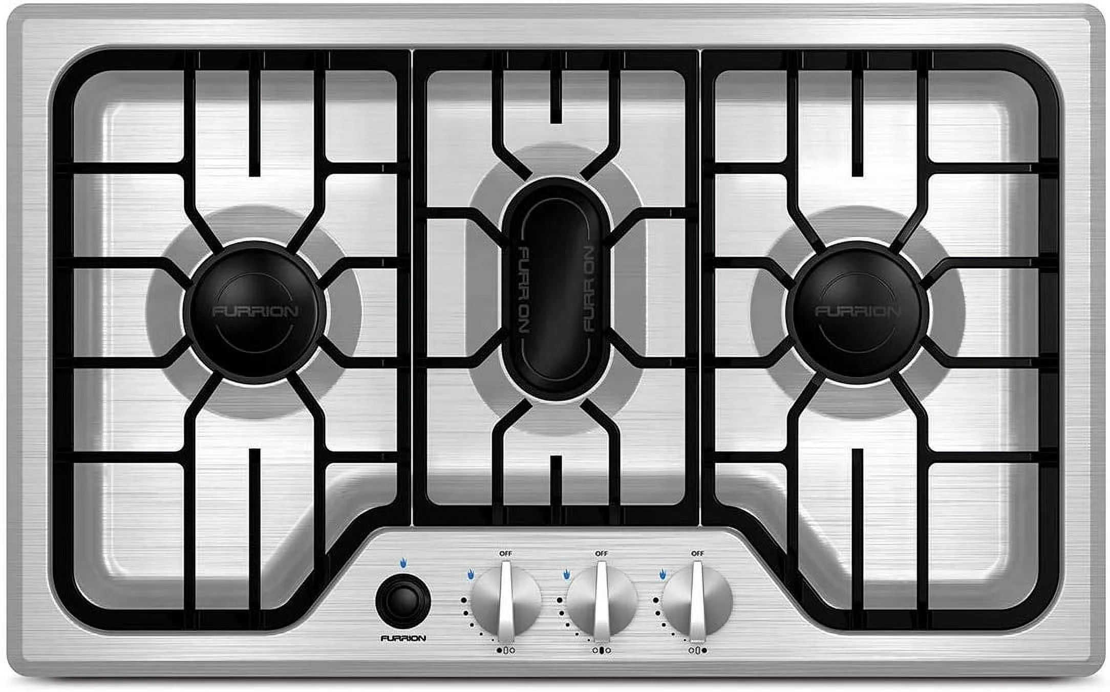 The beautiful, flush-mounted design and professional cast-iron grills of the Furrion Chef Collection 3-burner gas RV cooktop #FGH4ZSA-SS will redefine the way you use your RV kitchen. It provides 7,500 BTUs of power per burner.