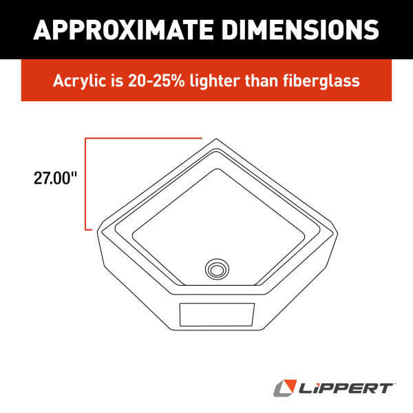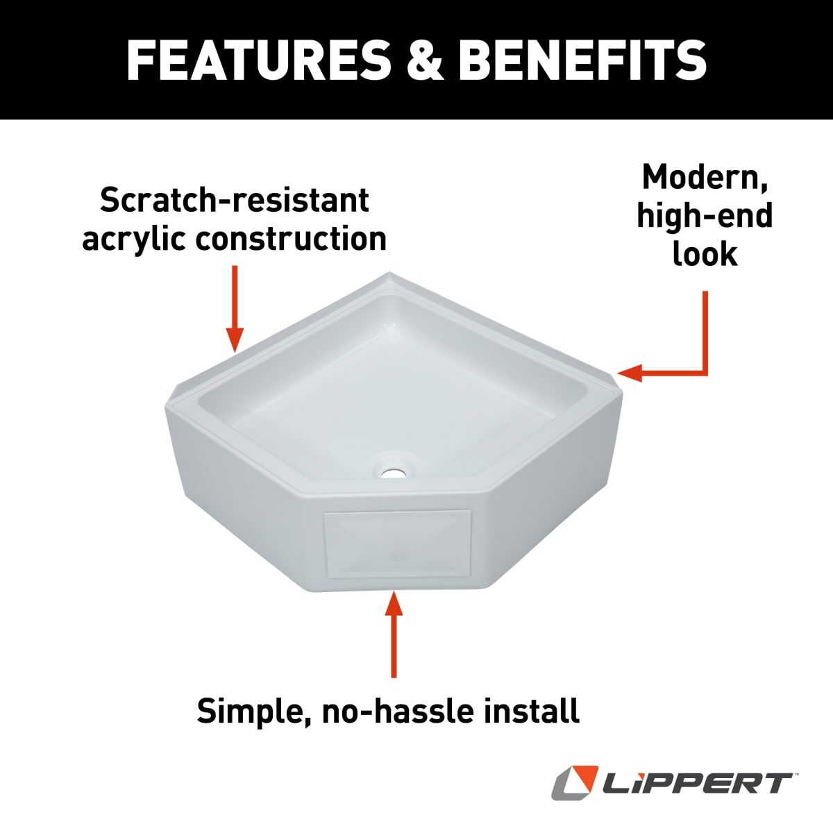 Lippert Corner RV Shower Pan with Center Drain – 27″ x 27″ White