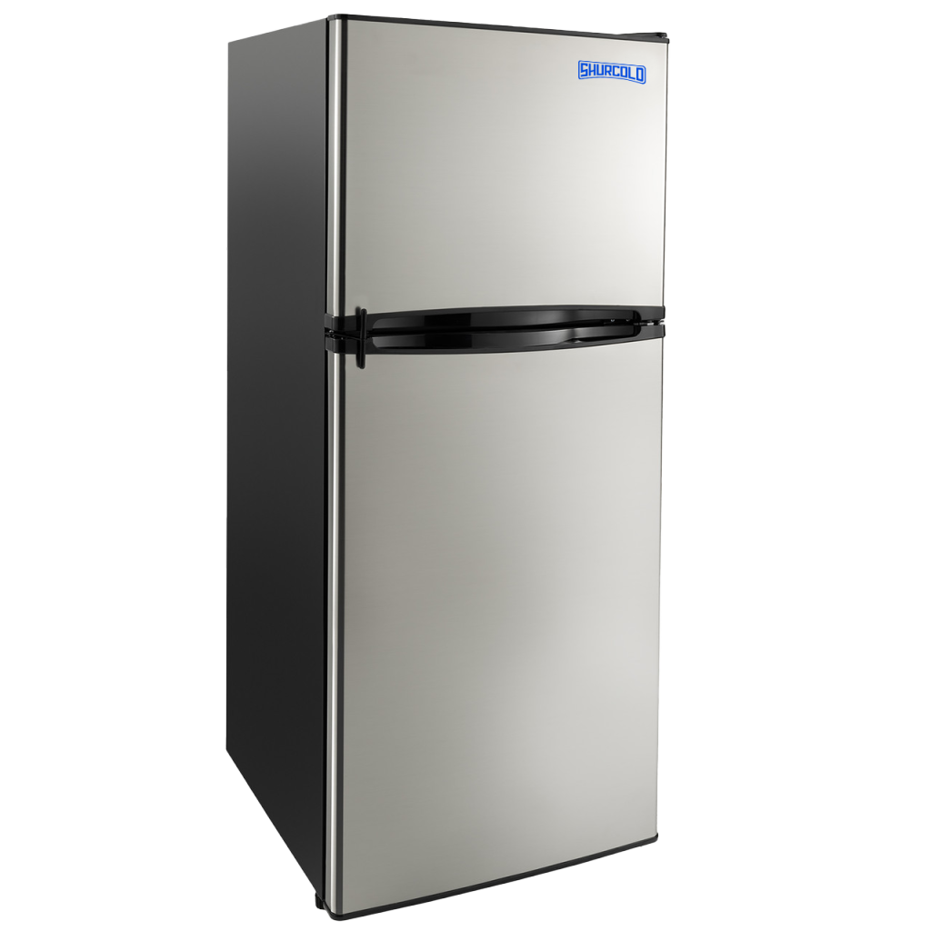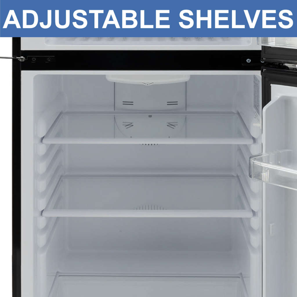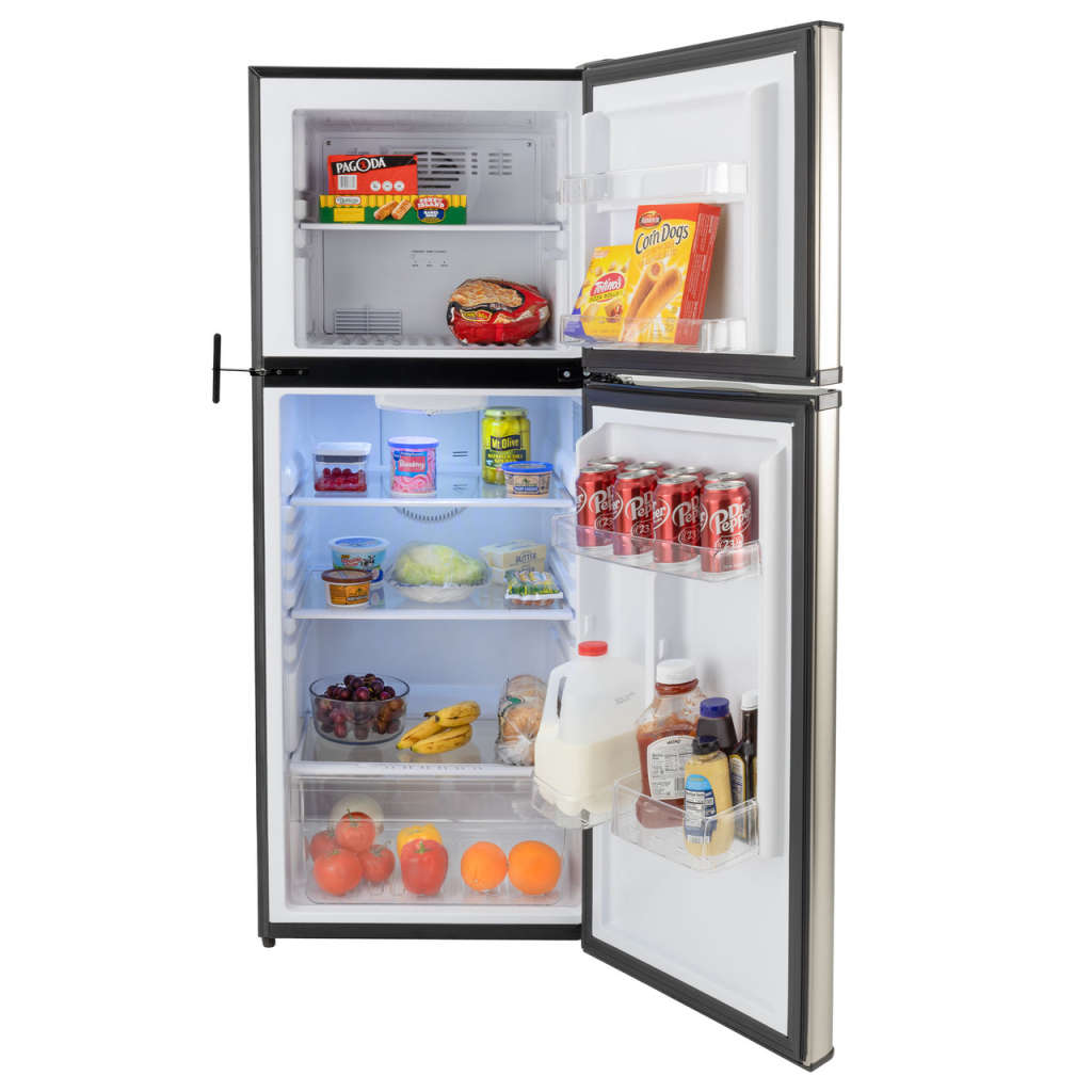 If you are looking for a large and versatile refrigerator, look no further than this 10 Cubic Foot 12V Refrigerator. It features a bright interior LED light, a built-in door lock, and an adjustable fridge and freezer temperature control. It also has an automatic defrosting system that prevents ice buildup and saves energy. It has two adjustable refrigerator shelves, one adjustable freezer shelf, a clear crisper with cover, and convenient door storage options. The adjustable leveling feet and the reversible door hinge allow you to customize the fridge to fit your space. You can also top mount the fridge using a separate mounting bracket (sold separately).